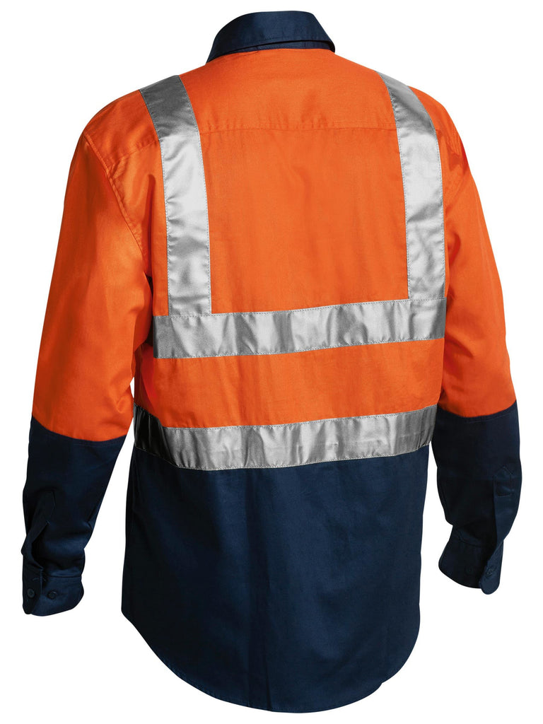 Two tone high visibility long sleeve 100% cotton preshrunk drill shirts with reflective tape. 100% Cotton Preshrunk Drill 190gsm